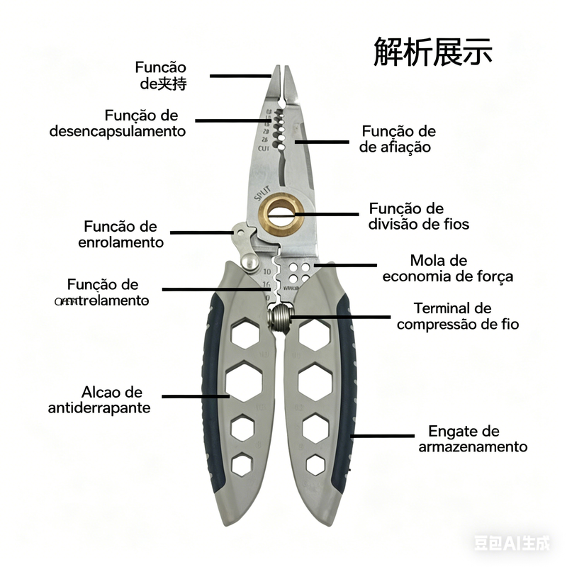Marca: DongxiqiangFunção: Alicate para aparafusar e descascar fiosMaterial: Aço níquel-cromo (aço inoxidável)Peso: 0,15Público-alvo: Trabalhadores manuais, eletricistasCenário de aplicação: Todos os alicates multifuncionais